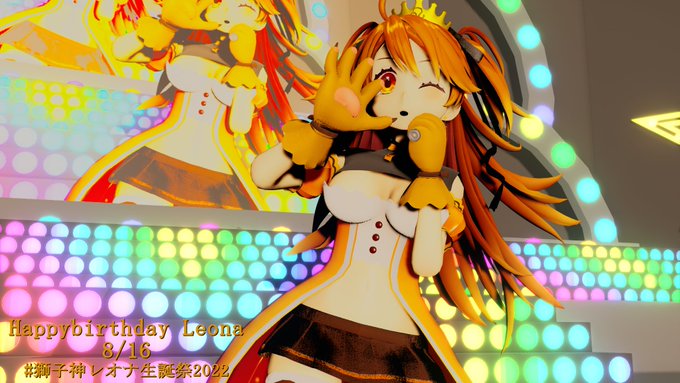 #レオナアート #獅子神レオナ生誕祭2022 🎉レオナちゃん、誕生日おめでとうございますー!!🎊 近年は定期的にお耳がぴょこぴょこしたり、いっぱい髪型や衣装のバリエーションも増えて魅力が増し続けるし、エネルギッシュに歌う貴方が本当に大好きだーーー!!!☀️ 2枚目は配信中に見せる好きな表情を