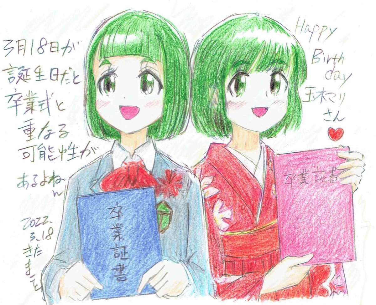 #玉木マリ誕生祭2022 キマリちゃん誕生日おめでとう! 放送された2018年3月が高2、2019年3月高校卒業で3年制の専門学校行ってたら今日卒業式の可能性も?大人っぽくなってるかも?と思って描きました💕 #玉木マリ生誕祭2022 #宇宙よりも遠い場所 #よりもい #玉木マリ誕生祭 #玉木マリ生誕祭
