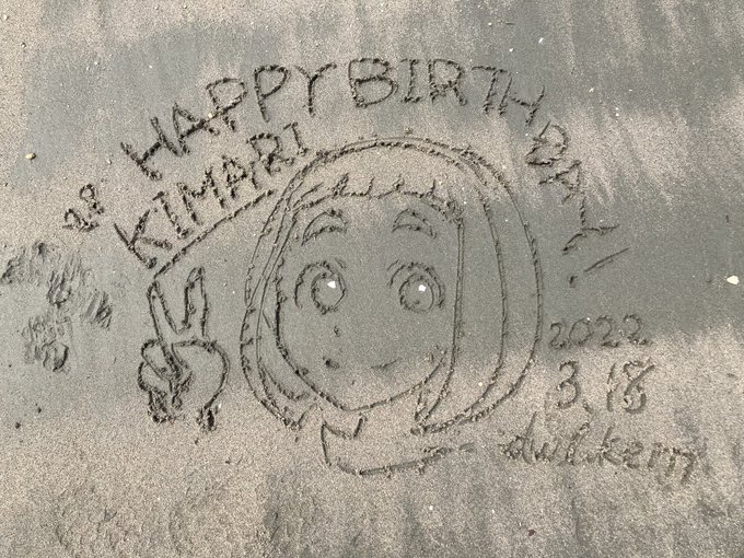 ダメ押しすみません。大潮のチャンスだったもので。 キマリ誕生日おめでとう!砂浜で! #よりもい #yorimoi #玉木マリ生誕祭2022 #玉木マリ誕生祭2022 #宇宙よりも遠い場所 #砂浜絵