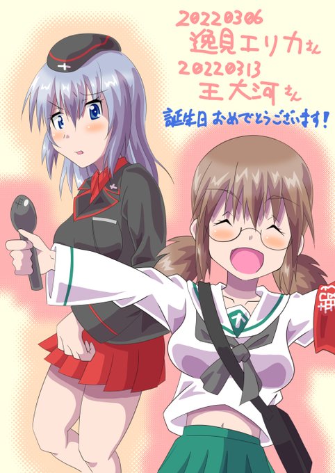 メッチャ久しぶりに、お絵描き&ガルパンキャラを描いた結果こうなりましたw 今回は、お二人の誕生日が近いので、一緒にお祝いです!! お誕生日おめでとうございます!!! #逸見エリカ生誕祭2022 #王大河生誕祭2022 #garupan