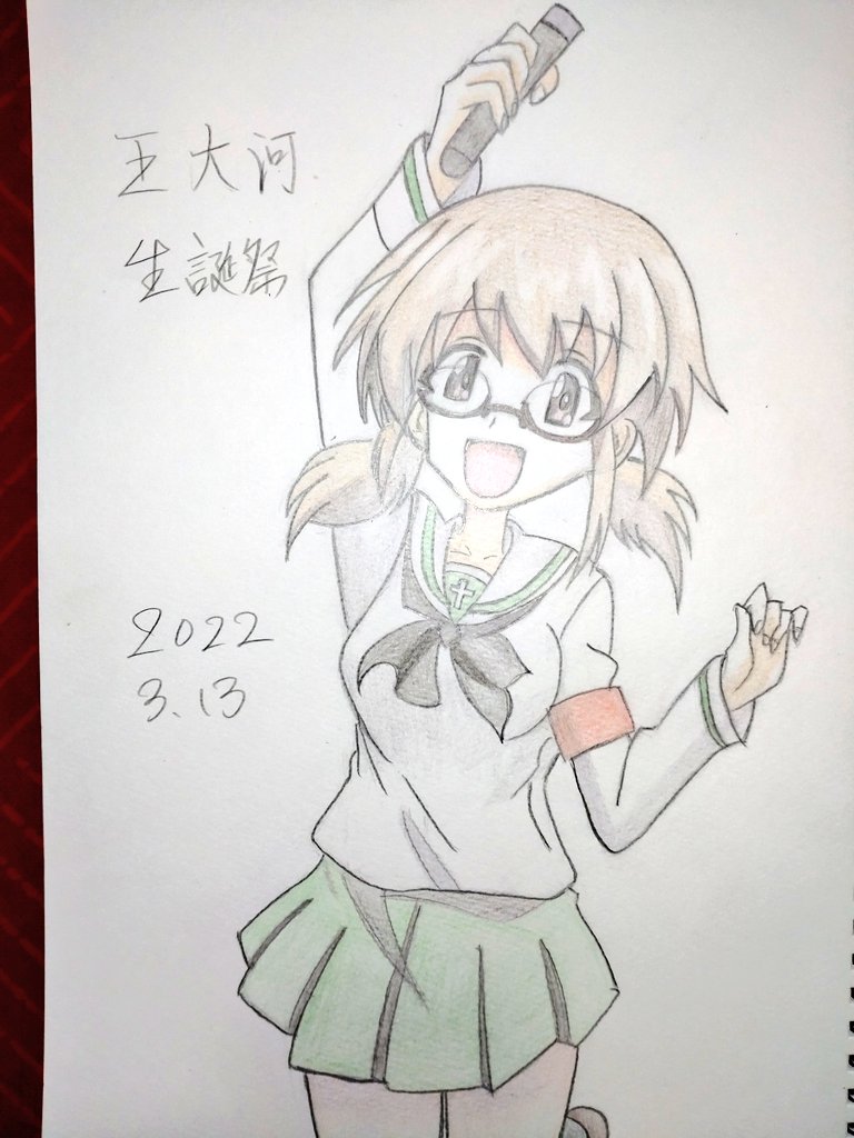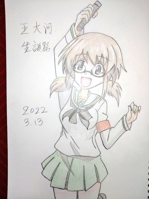 #週末ガルパンお絵描き120分一本勝負 #週末ガルパンお絵描き120分一本勝負20220313 お題「王大河」 誕おめも兼ねて 大河ちゃんハピバ! #王大河生誕祭2022 #王大河生誕祭