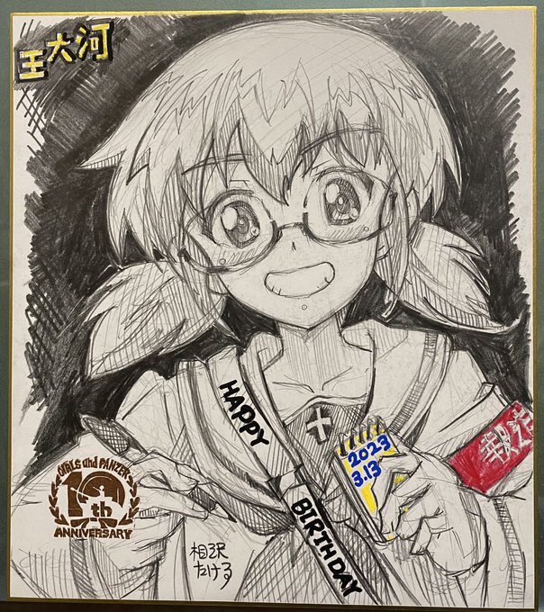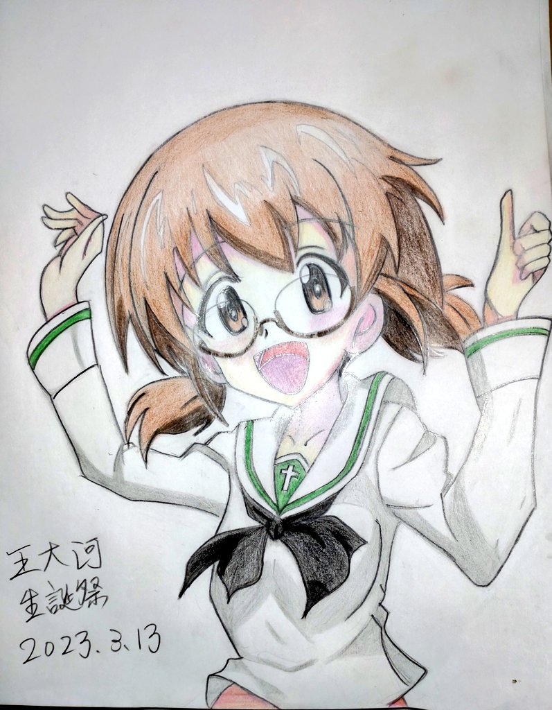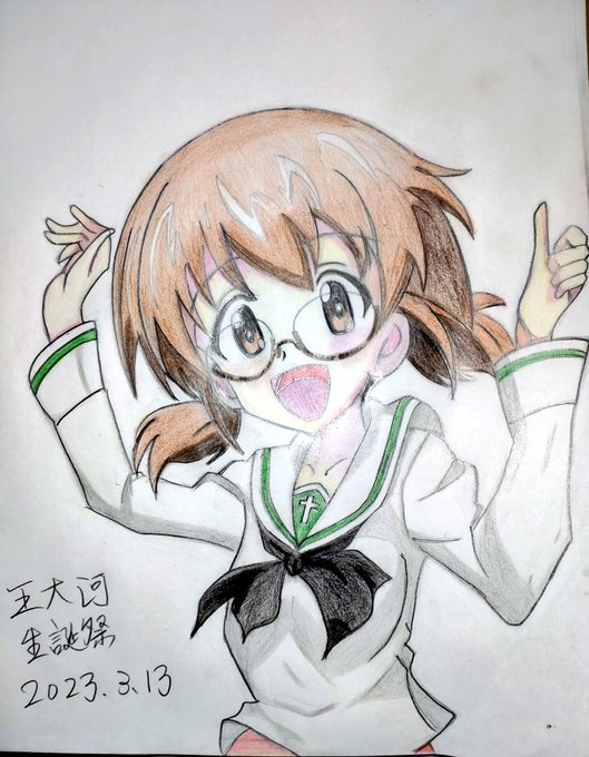 ㊗️王大河様、お誕生日おめでとうございます🎈🎊🎉🎂 王ちゃんを描きました。 何度か描いてますが、絶対似ないです🥺 大洗女子学園は、コンプラうるさくないと思いますけどね😅 #王大河生誕祭2023 #王大河生誕祭