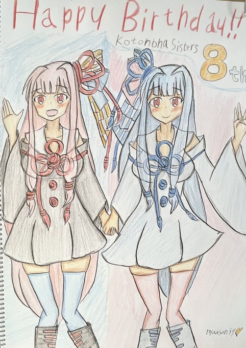 #琴葉姉妹誕生祭2022 #琴葉茜 #琴葉姉妹生誕祭2022 #琴葉葵 #琴葉姉妹 #琴葉姉妹8周年 茜ちゃん葵ちゃん誕生日おめでとー!ってことで琴葉姉妹の公式立ち絵を模写したもののなんか全体的にあんまり上手くいかなかった…