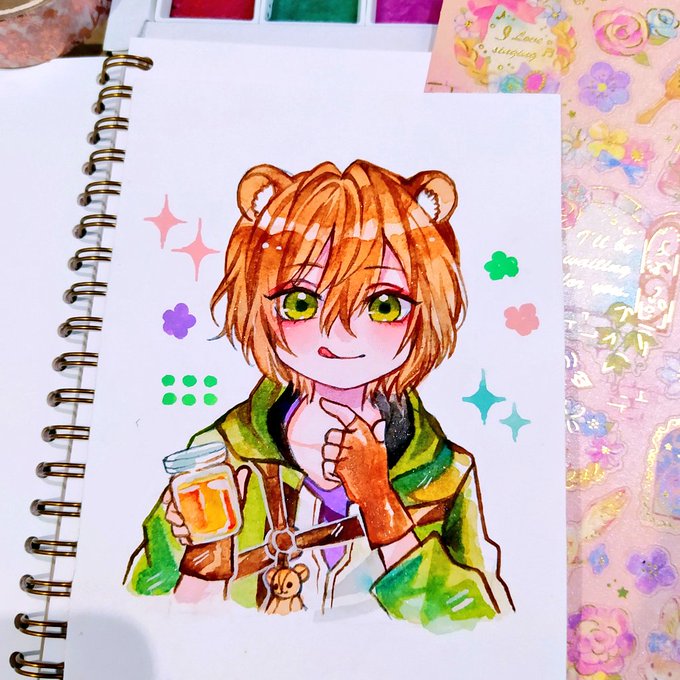 🎉🎂ルークお誕生日おめでとうございます🎂🎉 色塗り色々模索中で瞳がキラッキラですw 立ち絵しか知らない娘に何か違くない?って言われたけど楽しく描けたからいいのだ(ぇ そして此処は何処だ? 🤣 #生きる意味をみつけたクマさんの手をとり祝福を_ルーク誕生祭2022 #イケプリFA #コピック