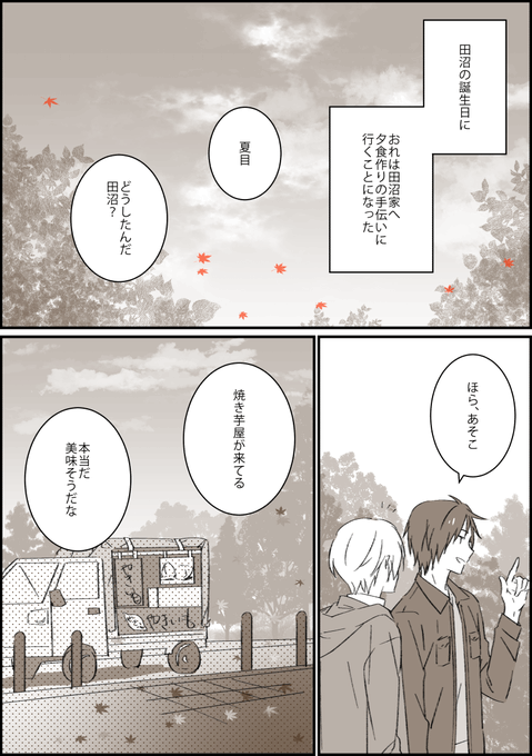田沼要くん、お誕生日おめでとうございます!ポップアップの描き下ろし同級生が可愛かったので夏目に焼き芋でお祝いしてもらう漫画を描きました🍠 #田沼要生誕祭2021 #田沼要誕生祭2021