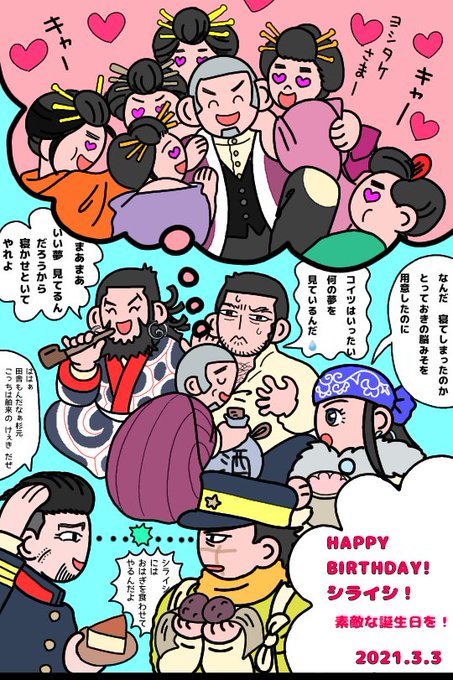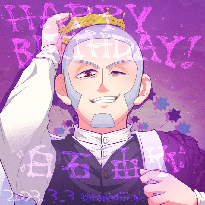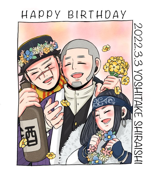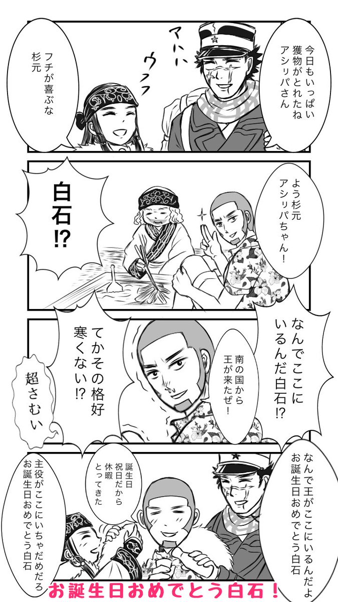 白石誕生日おめでとう🎉🎉🎂 白石の器用だけど不器用なところがとても人間らしくて好きです!!! 杉元とアシㇼパさんと一生仲良くしててくれ〜📣📣 #白石由竹誕生祭2023 #白石由竹生誕祭2023
