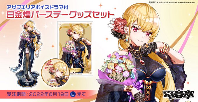 💰白金 煌💰 バースデーグッズセット ✨ご予約開始✨ 白金 煌の誕生日を記念して 描きおろしイラストを使用した グッズセットが登場‼💐 白金 煌、灰島銀華による バースデーボイスドラマ付き✨ ▶詳細はコチラ shop.asobistore.jp/products/detai… #電音部 #白金煌生誕祭2022