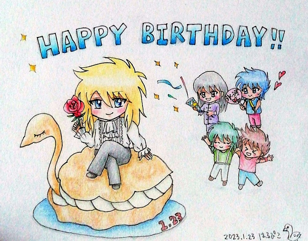 #キグナス氷河生誕祭2023 #白鳥星座の氷河生誕祭2023 #キグナス氷河誕生祭2023 何度でも過去絵でお祝い🎂🎉 氷河おめでとう*\(^o^)/*🎊🎉🎉 月間中に新規絵が描けるように頑張りたい💪