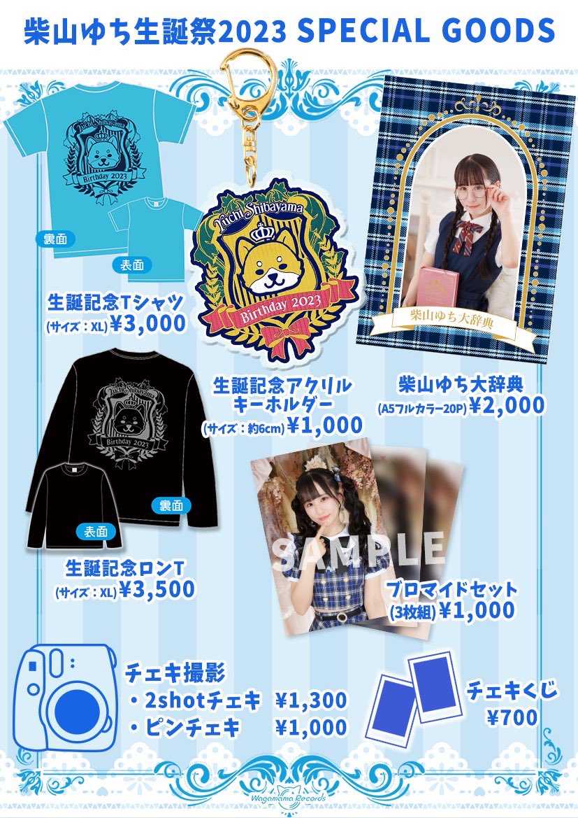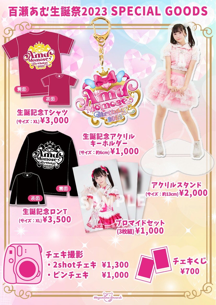 2/26 江坂MUSEにて発売の あむ、ゆちの生誕記念グッズ表です✨ ※ゆち大辞典、ブロマイドは在庫数が多めなので昼の部から販売 Tシャツ&ロンTは数が少ないのでお早めのご購入がおすすめ! 生誕ロゴデザイン、グッズ表制作は 瞬さん(@shunshun0211)です✨ #百瀬あむ生誕祭2023 #柴山ゆち生誕祭2023