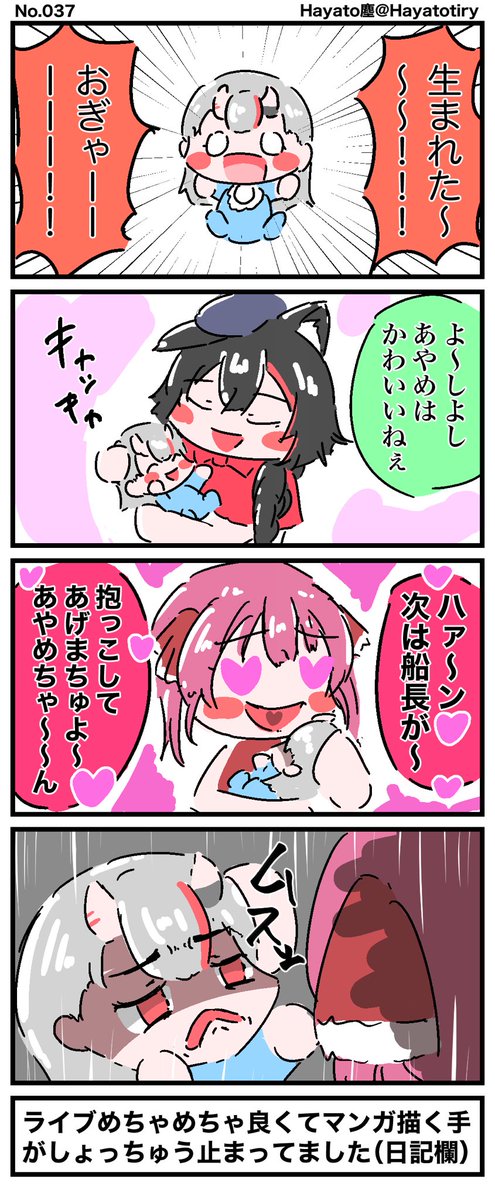 #日刊ホロマンガ No.037 【創作4コマ】 ベイビーあやめとママ #百鬼絵巻 #みおーん絵 #マリンのお宝 #百鬼あやめ4th生誕祭 #百鬼あやめ生誕祭2021 #百鬼あやめ誕生祭2021