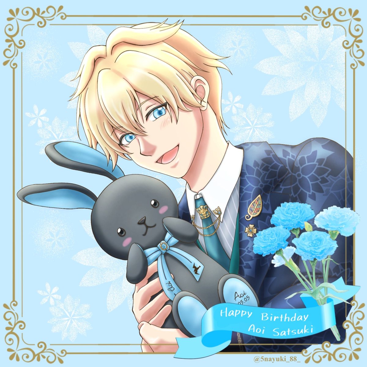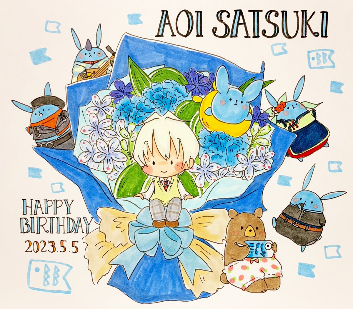 葵くん、お誕生日おめでとう〜!! 🎉🎂🐰🎏🩵 優しくて温かい葵くんのキラキラ笑顔にいつも癒やされています✨今年も穏やかに笑っていられる幸せな一年でありますように🌟 #皐月葵誕生祭2023 #皐月葵生誕祭2023