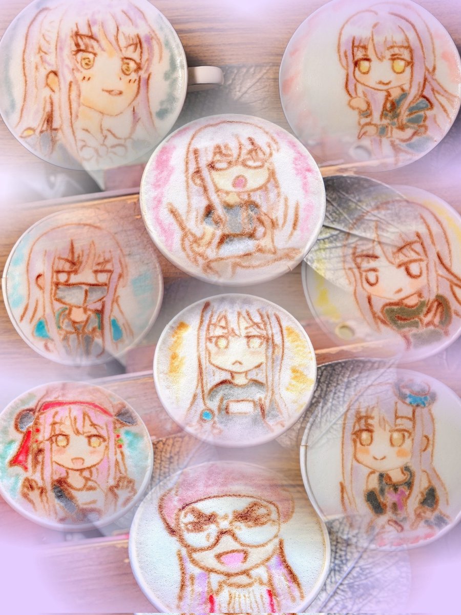 おはようございます! 今日は相羽あいなさんの誕生日(おめでとうございます🎂)ということで 今まで描いたあいあいの名シーンを友希那さんで再現ラテアートを集めました! #相羽あいな誕生祭2022