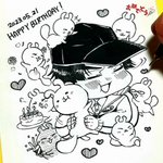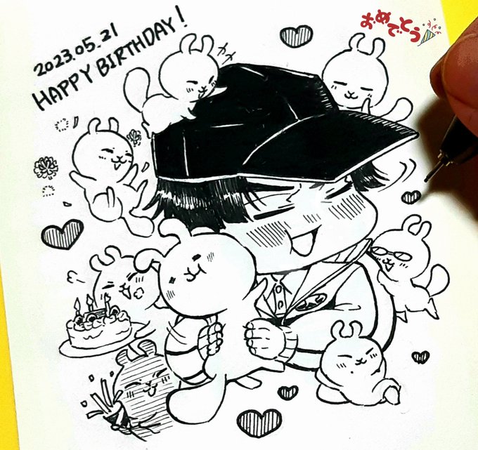 🎩「真田くん、お誕生日……おや、うたた寝とは珍しいですね」 🎭「なんじゃ、笑っとるぞ……良い夢でも見とるんかのう」 🧢「💤 💤 💤 ……🐰💓」 🎊 Happy Birthday 真田 🎂🎉 #真田弦一郎誕生祭2023 #真田弦一郎生誕祭2023