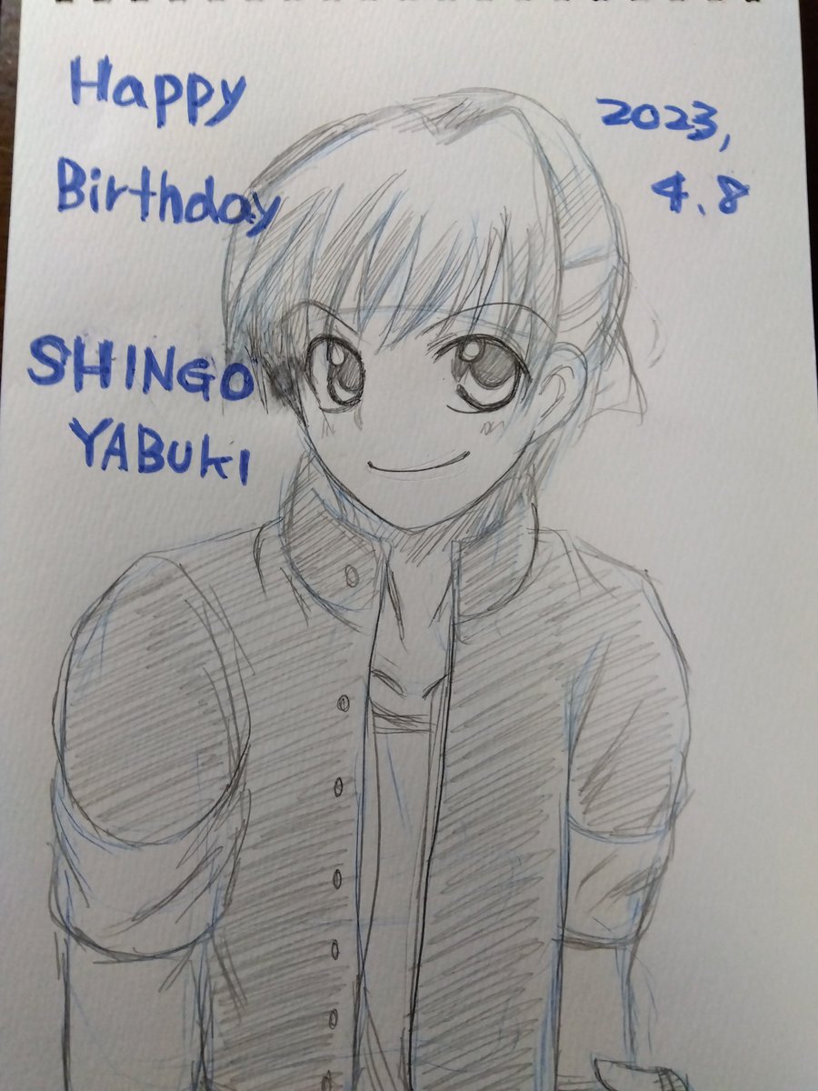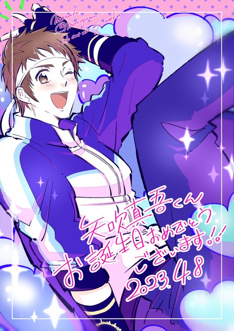 時間も気力もなくて雑だけど……真吾きゅんお誕生日おめでとう㊗️🍾🎉🎊🎂👏🥳 令和になってから、キミにここまで情緒を乱されるとは思ってませんでした💕 久しぶりの出場もおめでとう㊗️ もう少し落ち着いたら丁寧に描きたい〜💦 #矢吹真吾生誕祭2023