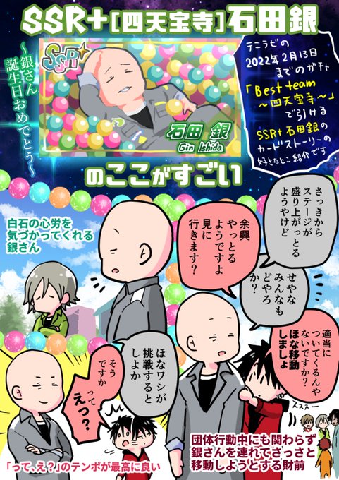 【🎉銀さんお誕生日おめでとう!🎂】 今テニラビでやってる四天ガチャの「SSR+[四天宝寺]石田銀」のカードストーリーの素晴らしいところをまとめました! (⚠️これから引く予定の方はネタバレ注意) #石田銀誕生祭2022 #石田銀生誕祭2022