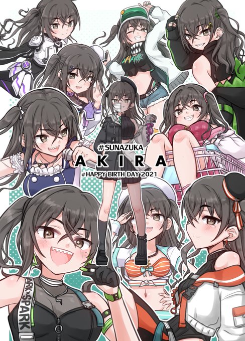 あきらちゃんお誕生日おめでとう〜!!🎉🎉🎉 去年ちゃんと祝えなかった分初登場から今までの衣装全部盛りでお祝い!!🌊🦈🦈🦈🦈🦈🦈🦈🦈🦈🦈🌊 これからもファンの一人として推していくね🥳 #砂塚あきら生誕祭2021