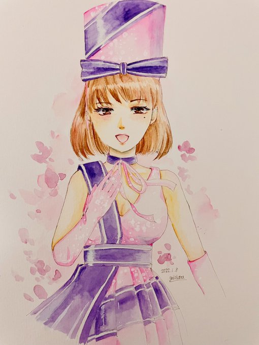#神崎すみれ生誕祭2022 #神崎すみれ誕生祭2022 #サクラ画廊 フアンの方からのプレゼントかな?というイメージで描きました! すみれさんが持っているのは実在するスミレのキャンディです。
