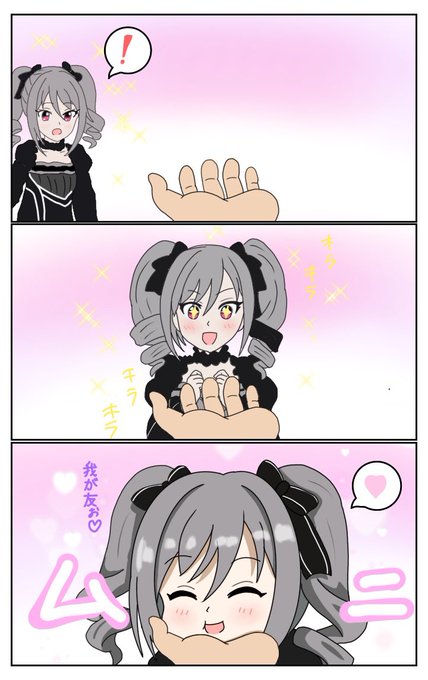 [4コマ] 祝宴の供物2 🎉お誕生日おめでとう🎂 去年のもりくぼ誕生日の続き #森久保乃々 #神崎蘭子 #神崎蘭子生誕祭 #神崎蘭子生誕祭2023 twitter.com/escapist_uco/s…