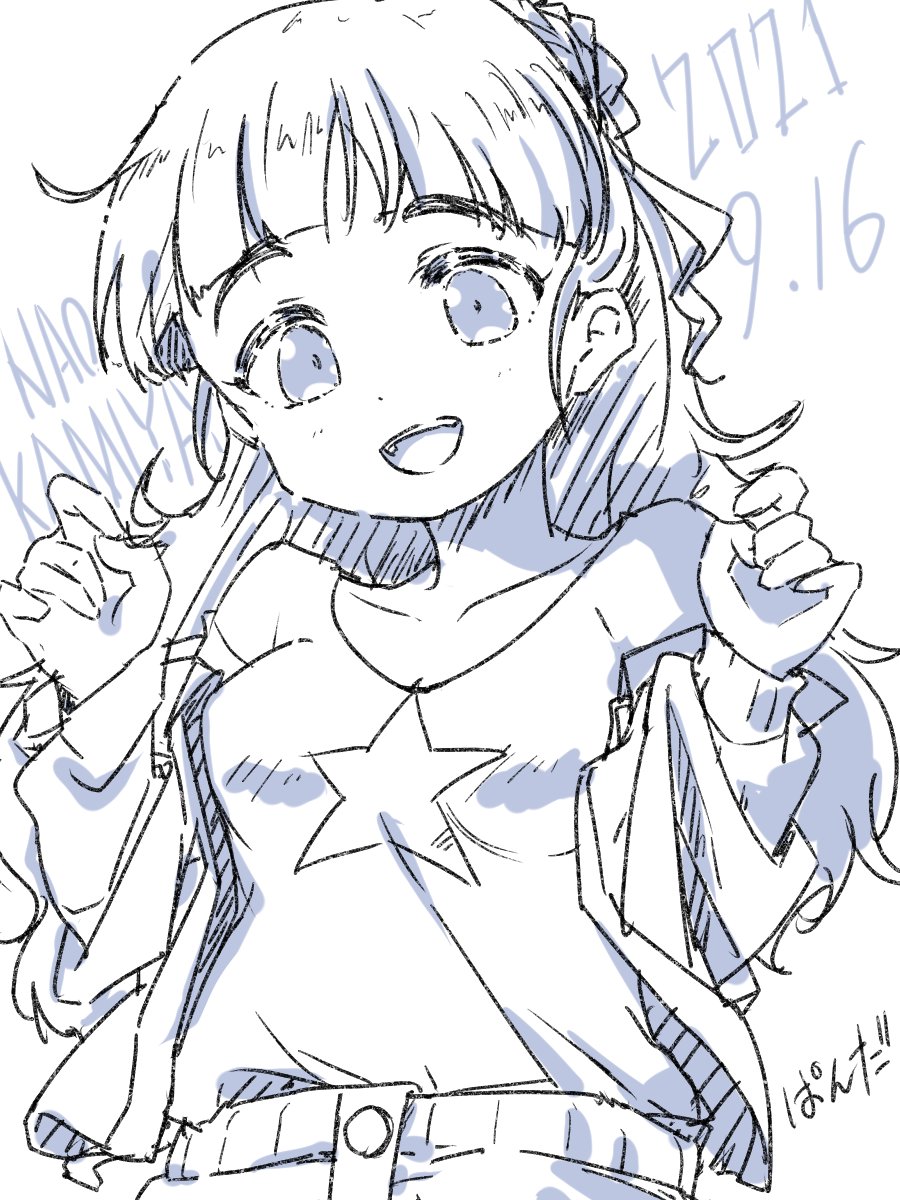 奈緒、お誕生日おめでとう! お洋服はすべてMIHOMATSUDAさんになります。 初期の衣装に近いコーデです。 #モバマス版深夜の真剣お絵かき60分1本勝負 #神谷奈緒生誕祭2021 #神谷奈緒誕生祭2021 #神谷奈緒
