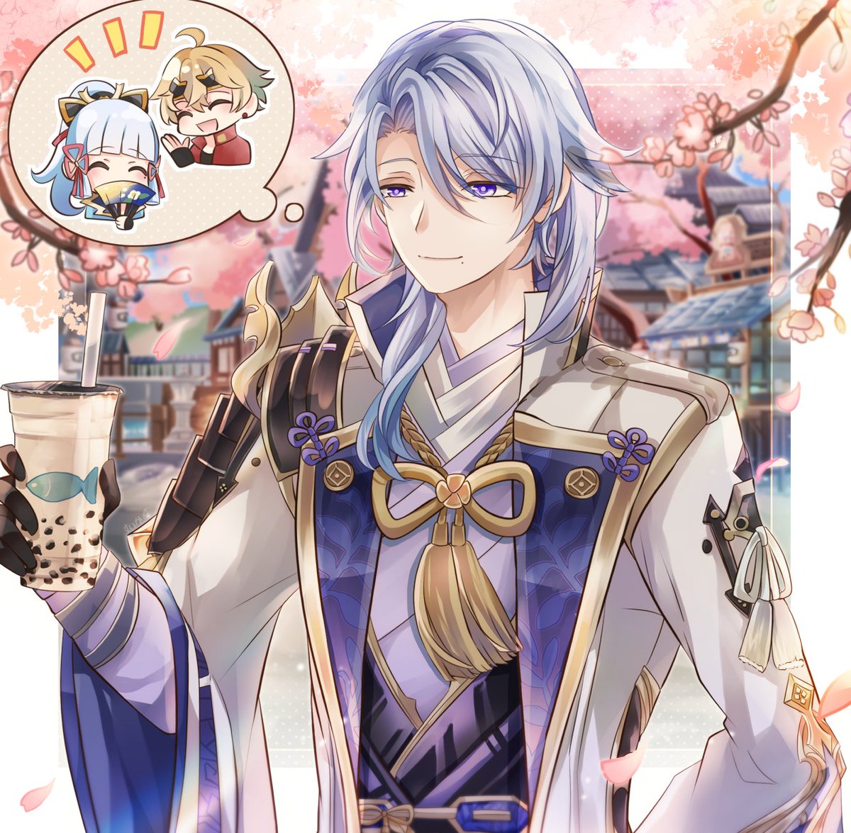 "They say the milk tea here is delicious. Do you want some?" I..i..Indirect Kiss!? (⁄ ⁄•⁄ω⁄•⁄ ⁄)⁄ #原神 #AyatoKamisato #Ayato #神里綾人 #神里綾人生誕祭2022 #神里綾人誕生祭2022 #genshinimpactfanart #GenshinImpact #genshintwt #genshin #genshinfanart
