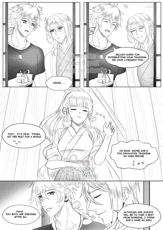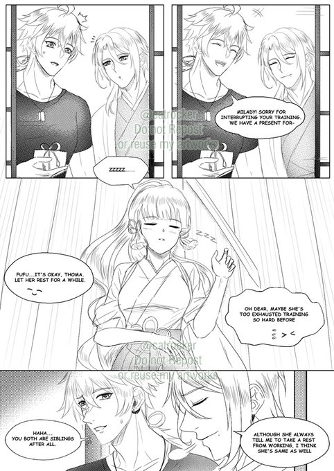 [Right to Left] Comic for Ayaka's b'day, also I really wanted to draw her with her brother and Thoma together^^ Love this trio so much 😍 Happy b'day, ojou🥰🌸❄️ . #神里綾華生誕祭2022 #神里綾華 #Ayaka #AyakaKamisato #神里綾人 #AyatoKamisato #トマ #thoma #Genshinlmpact #原神