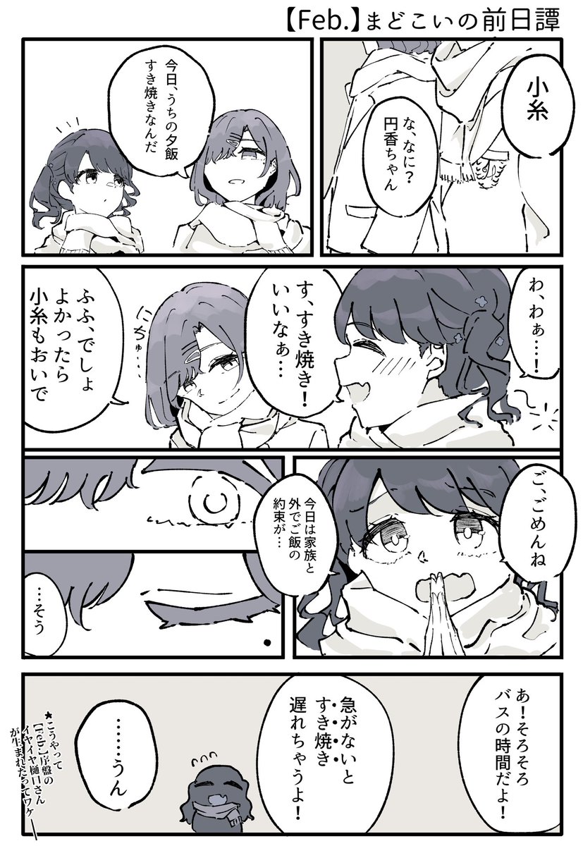1番大好きなコミュ【Feb.】前日譚捏造のまどこい漫画です アイドルやってるときの小糸ちゃんも幼馴染といるときの小糸ちゃんも事務所のみんなといるときの小糸ちゃんも4コマの小糸ちゃんも大好きだ〜!!! #福丸小糸生誕祭2021 #福丸小糸誕生祭2021