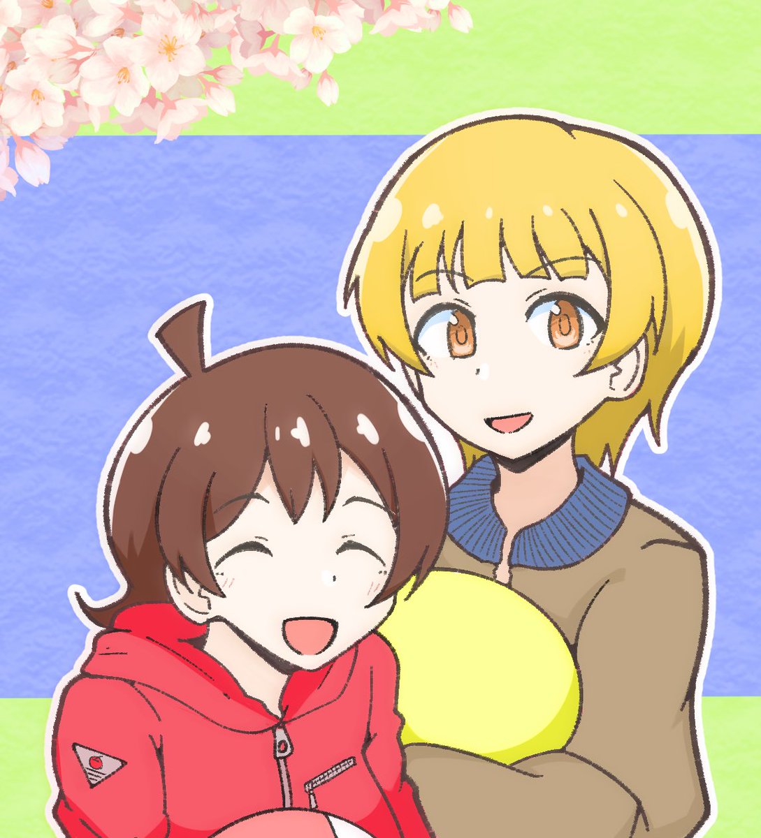 よっしゃー!!!!できたー!!!! エイプリルフールのイラストで描きました! まだまだ練習不足だけど、確実に成長を実感してるから!褒める!! 可愛くできたよ!!! お誕生日おめでとう!!大好き!💛💙 #桜守歌織生誕祭2022 #福田のり子生誕祭2022 #桜守歌織 #福田のり子