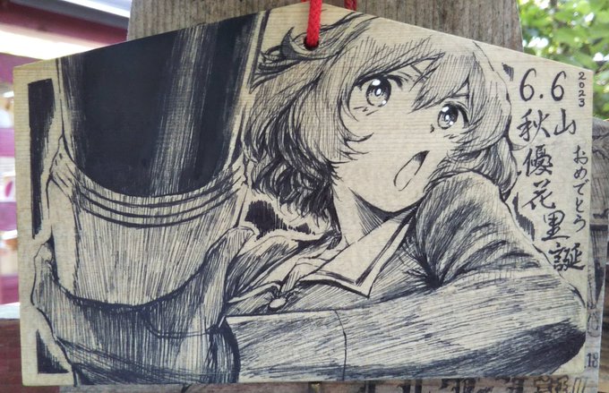 ㊗️秋山優花里殿、お誕生日おめでとうございます🎊🎉🎂 初めて色紙を描きました。 なんとか間に合っ・・・てないか😅 本当は日曜日に持っていく予定が完成しなくて今できた🥹 今更、持って行けないので画像でアップ #秋山優花里生誕祭2023 #秋山優花里生誕祭