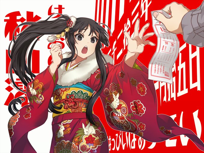 澪誕おめイラスト2023 久々に描きました 一期の初詣の振袖をアレンジして おみくじを取られた澪ちゃんイメージです HTTで一人だけ誕イラ描いて無かったんよね #秋山澪生誕祭2023 #けいおん