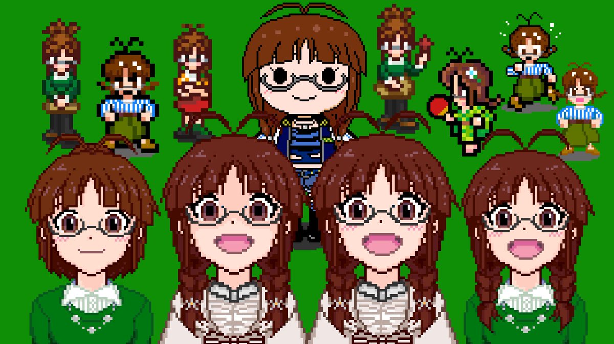 #りつコレクション #秋月律子誕生祭2022 差分がほとんどだけれども去年から約1年間のドットでもお祝いだー!!! ちなみに個人的に左上から二人目の仁王立ち律子が好きです あとショートカット律子も期待をこめて…