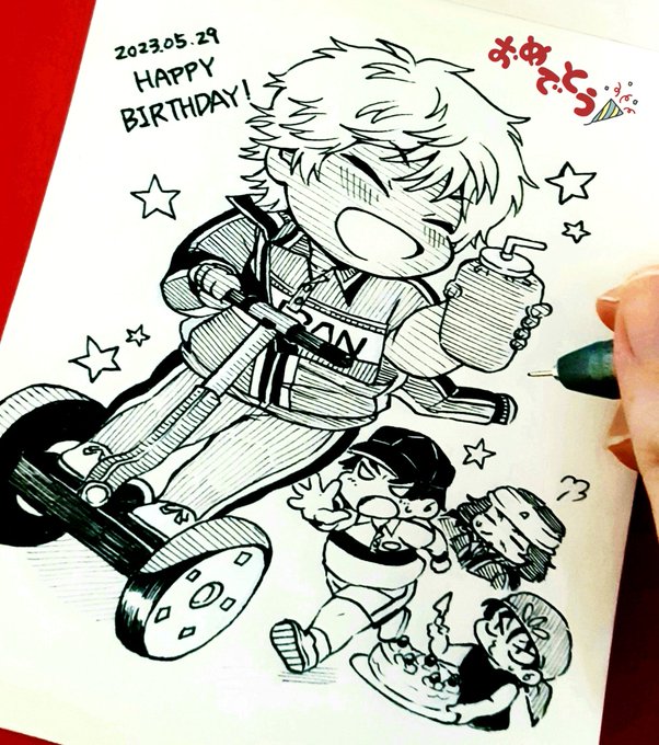⛴️「誕生日プレゼントに戴きっ☆」💥🥤 🧢「先輩!プレゼントなら別に用意してありますが!?💦」🎁 🐍「ケーキもありますよ先輩!種ヶ島先輩!?💦」🎂 🐲「勘弁しろし……💨」 🎊 Happy Birthday 修さん 🎂🎉 #種ヶ島修二誕生祭2023 #種ヶ島修二生誕祭2023