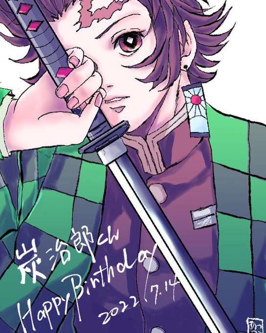 誕生日おめでとう✨ 構図は大好きな縁壱を参考に ヒノカミ神楽と刀の滅の素敵な文字は光さん@76hikari とコラボさせて頂きました😉 何パターンもありがとうございます🙏 #竈門炭治郎生誕祭2022