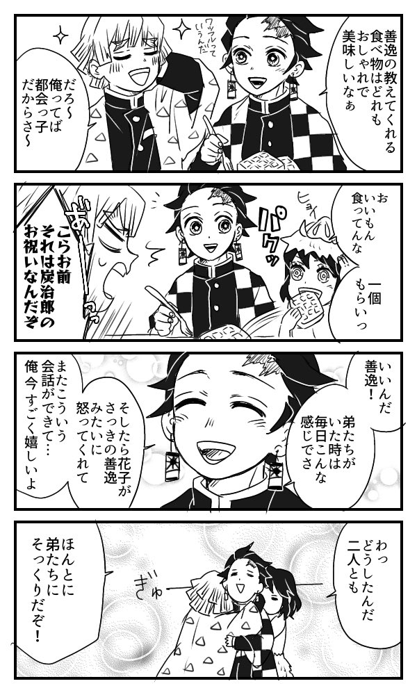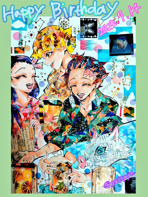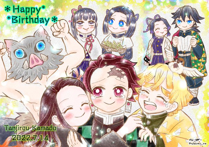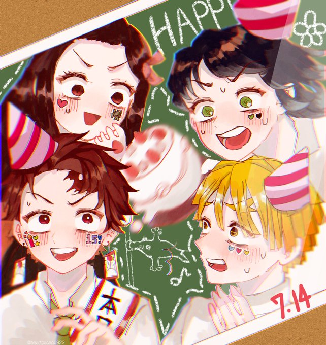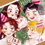 ★お兄ちゃんの誕生日★沢山見てくださってありがとうございます🙏💞 🍀もう1枚カラーイラストも描いてみました🎊 🫧漫画後の釜凹達でお祝いパーティー🎉 #竈門炭治郎生誕祭2022 #竈門炭治郎誕生祭2022 twitter.com/clover_zn/stat…