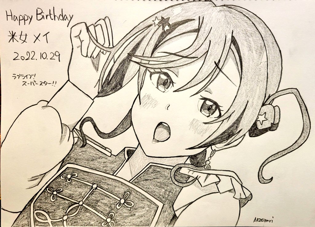 メイちゃんお誕生日おめでとう! 照れ屋で目付き悪くて(かわいい)好きなものにまっすぐでラブライブで1番応援したいなって思えた子です…!!! これからも応援させてね😊 p @simunacanon #米女メイ生誕祭2022 #米女メイ誕生祭2022