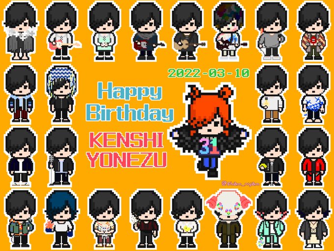 米津さんお誕生日おめでとうございます!! 今年は米津玄師としての活動が10周年になるアニバーサリーイヤー これまでの本人(CG含む)曲衣装25着分をドット絵で✍🏻 公開する度に新たな魅力が爆発していて最高の更新が止まらねぇ ずっとずっと大好きです 素敵な1年になりますように #米津玄師誕生祭2022