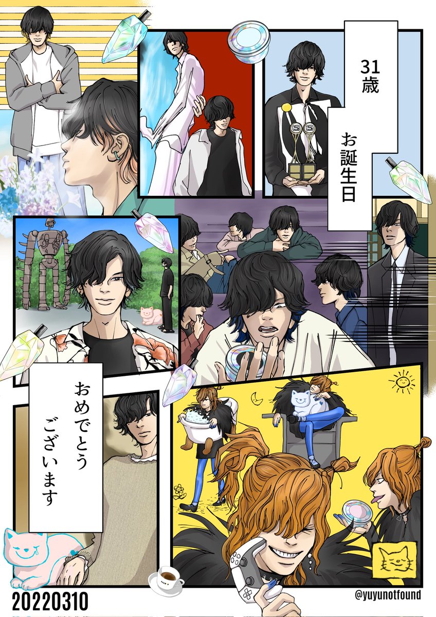 31歳のお誕生日おめでとうございます!!!着物やスーツ見れただけでも萌え転がったのに、ミニスカまで見れるとは…One,two,threeで愛を込めてもう一生遊ぼうぜ♪ #米津玄師誕生祭2022