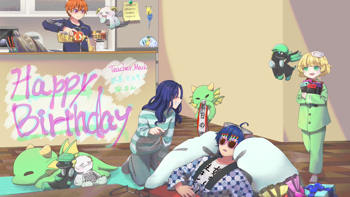 #オタク工房 #終匠竜生誕祭2022 改めましてお誕生日おめでとうございました‼️‼️✨ サプライズ企画に誘ってくれたみっくすもほんっとにありがとね🥲✨ 企画に使用した私イメージの一枚絵が一枚目(元絵はツリーへ) あ、二枚目は流れ星に金しか願わないリスナーのみんなです 最高でした‼️感謝‼️‼️
