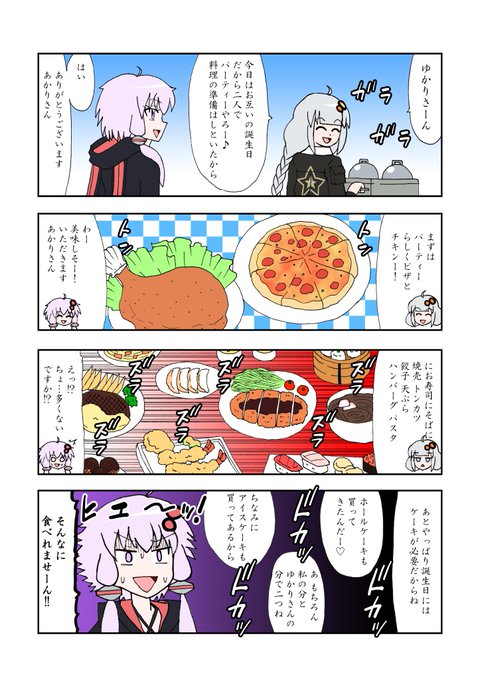 #結月ゆかり誕生祭2021 #紲星あかり誕生祭2021 #結月ゆかり生誕祭2021 #紲星あかり生誕祭2021 ゆかりちゃんあかりちゃん誕生日おめでとう! 灯「今日はね、お腹いっぱいになるまで食べていいんだって! 縁「マスター泣きそう……私はゲーム買ってもらうつもり 灯「そしたら一緒に遊ぼーね! 縁「うん