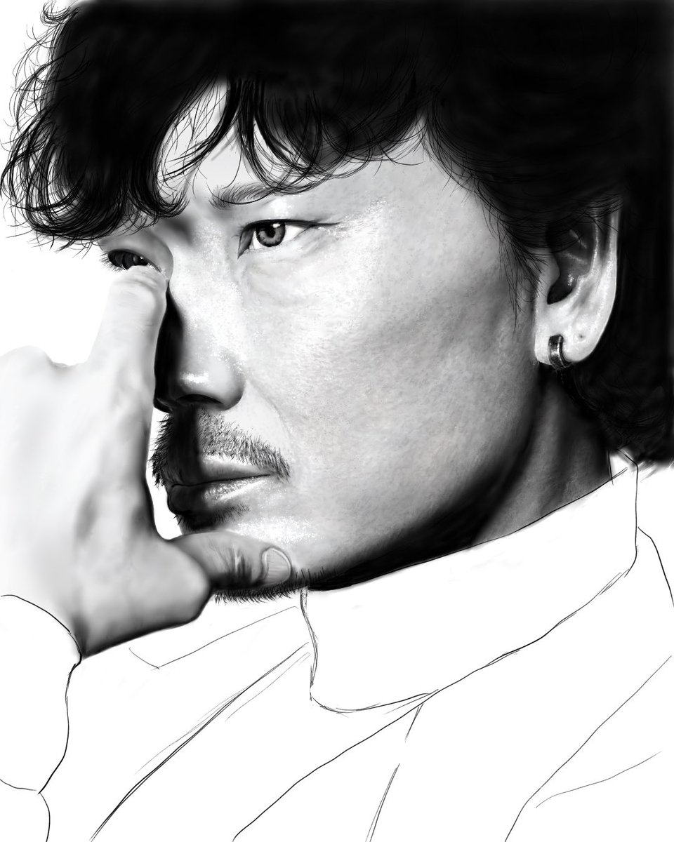 かなり遅くなりましたが ご結婚、お誕生日 写真集発売 おめでとうございます 初めて剛くんを描いてみました #綾野剛 #綾野剛誕生祭2023 #portrait CREA web よりportrait取材ページより 個人的見て欲しいポイント ジャケットの襟の繊維の目を描いている。 画面を明るくしてみてね