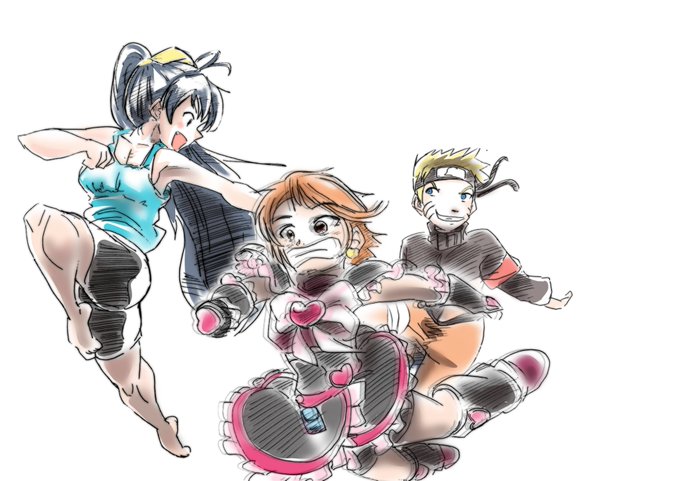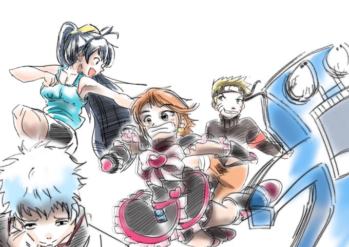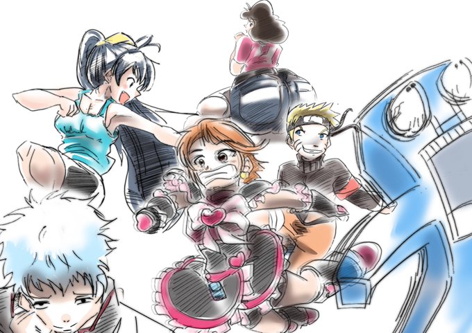 10月10日のお誕生日対決、ひとまず完成。みさえさんから逃げてるみたいな… #我那覇響生誕祭2021 #うずまきナルト誕生祭2021 #美墨なぎさ生誕祭2021 #坂田銀時誕生祭2021 #ところ天の助誕生祭2021 #野原みさえ生誕祭2021