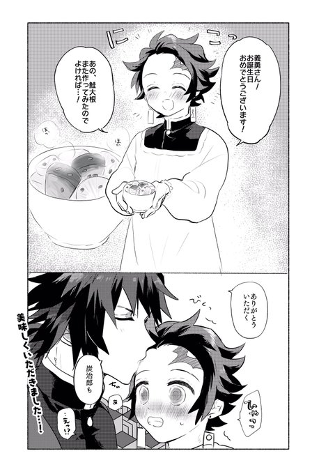 #義炭によるぎゆさん誕生祭2022 #義炭 年に数回しか描かない漫画で、お祝いさせてください❤ 一番描きたかったところだけ、カラーで塗りました。 おたんじょうびは、「ありがとうの日」🎵 🌊さん、生まれてきてくれてありがとうございます 🎴、いつも俺を照らしてくれてありがとう