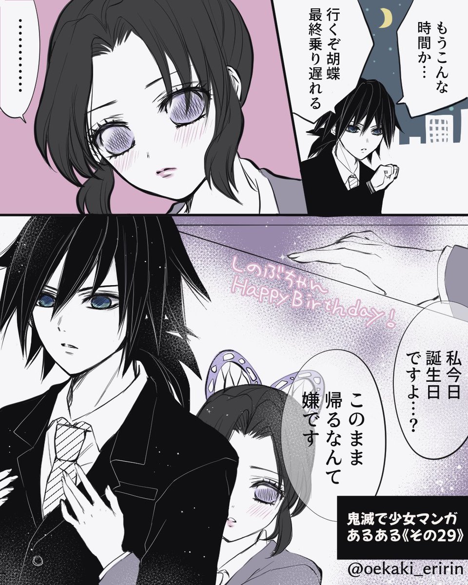 《鬼滅で少女マンガあるある29》 今夜は帰りたくない件 家族にはあらかじめ 「今日友達のウチに泊まるから〜」と言ってある率85% #胡蝶しのぶ誕生祭2022 #胡蝶しのぶ生誕祭2022 バースデー用に描いたから28飛ばして載せます〜☆