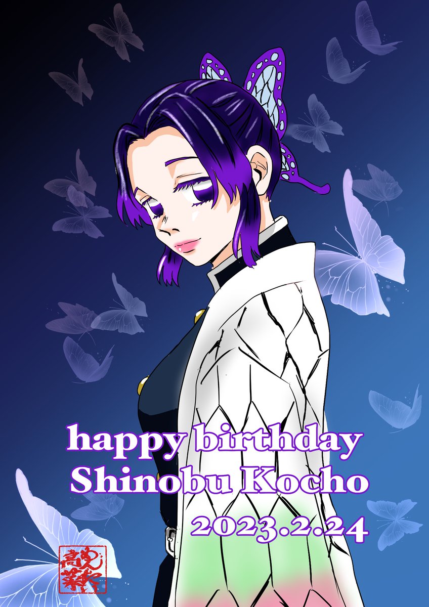 #胡蝶しのぶ誕生祭2023 遅刻しちゃったけど、🦋ちゃんおめでとう🎉 優しく常に微笑みを絶やさない貴女 反面内に秘めた👹に対する憎悪から、自分の身すら武器に変える強い貴女 知識、才能を持った貴女が居たから、最後に🎴が戻ってこれた 優しく強く、才能ある貴女が本当の笑顔で過ごせますように❤️