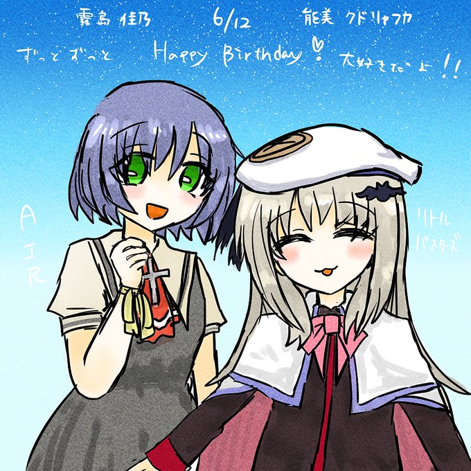 大変申し訳ございませんが、非常に遅くなりました。 しかし, 両方にお誕生日おめでとう狩野霧島 & ノウミ・クドリャフカ! 今日はみんなの誕生日を祝いましょう! Artwork by teduka (Left) & sumisuzu (Right) 🎂 #AIR #リトルバスターズ #霧島佳乃生誕祭2022 #能美クドリャフカ生誕祭2022