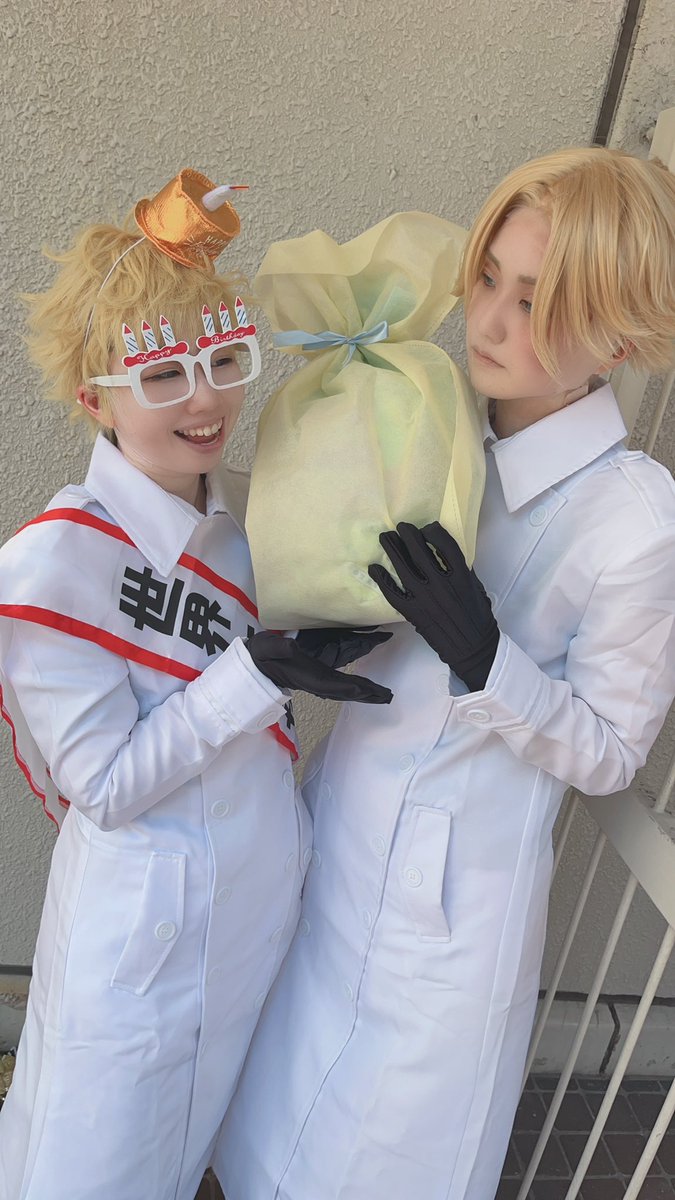 ⚠️コスプレ/東卍 🥥「花垣、とりあえずこれだけあれば好きなもん買えんだろ」 🍀「え!?現生!?も、もらえないです!!!!😭」 タケミっち:のん ココ:瀬戸 photo:愛斗 #花垣武道生誕祭2022 #花垣武道誕生祭2022