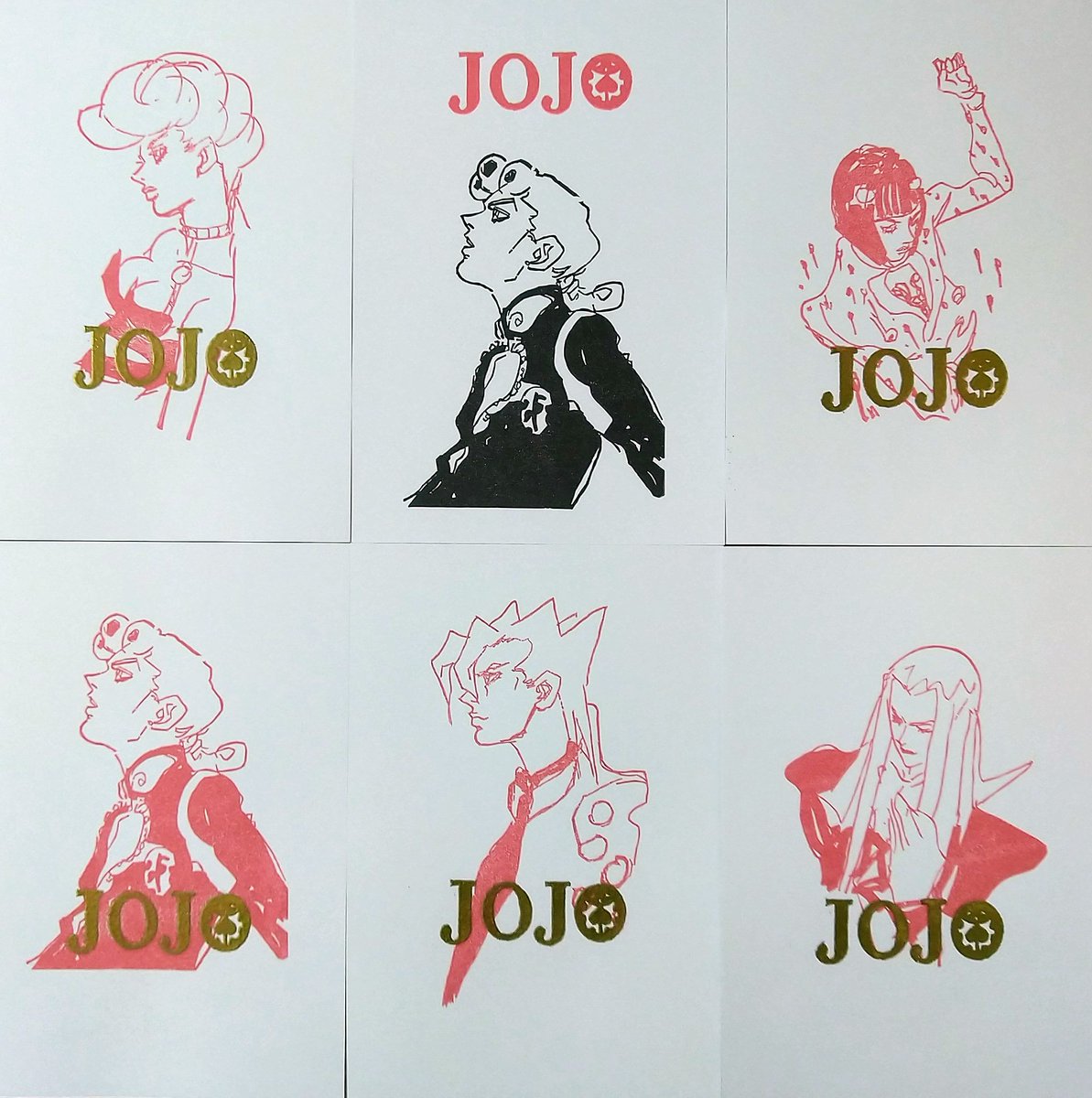 誕生祭ラストは線画 線画って 先生の頭に浮かんだビジョンが 初めて世に放たれた印象があって とても好きです 各キャラの象徴が 線画に込められている気もします 自分の作品を見直して 改めてJOJOも先生も大好きだなと 感じた一日でした☺️ #荒木飛呂彦生誕祭2022 #jjba #消しゴムはんこ