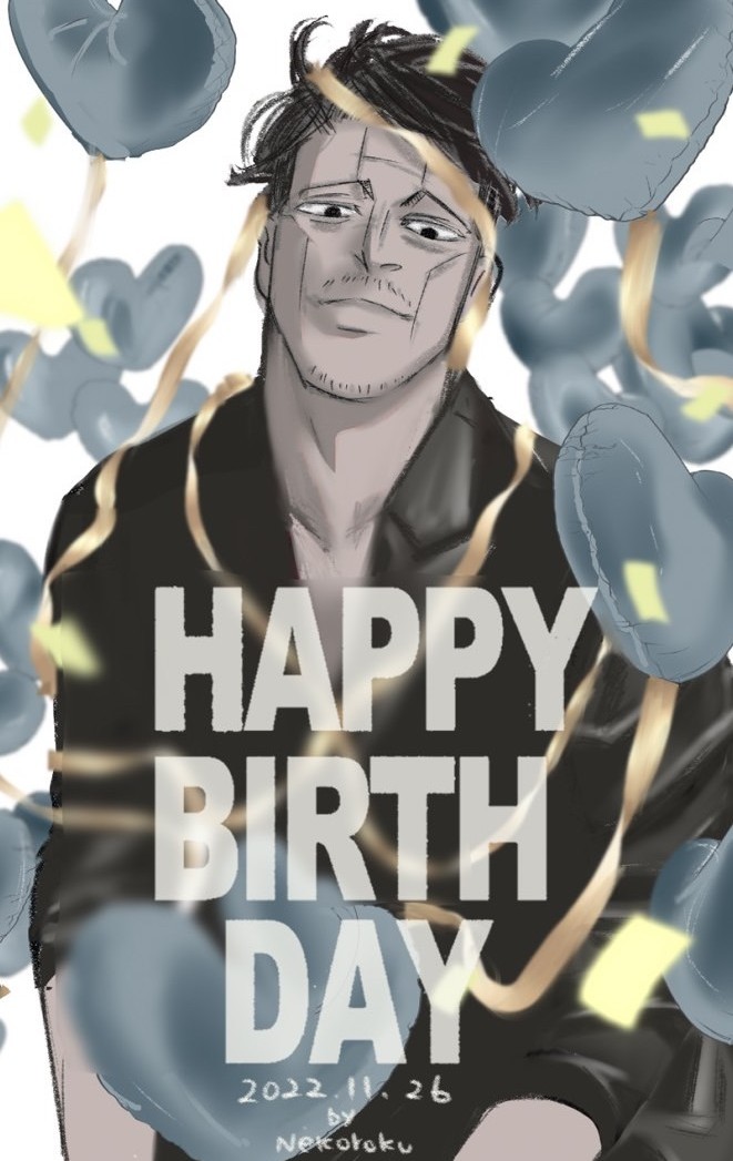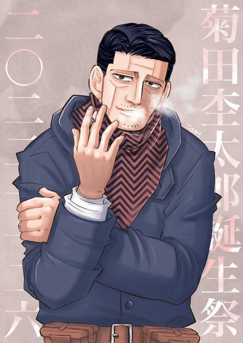菊田さんお誕生日おめでとう🎂🎉 ヤバいちょいワル・ダンディイケおぢと思ったけど、苦労人でお茶目なナイスガイだったね💕また有古と温泉入りたかったね😭 #菊田杢太郎生誕祭2022 #金カムアナログイラスト部