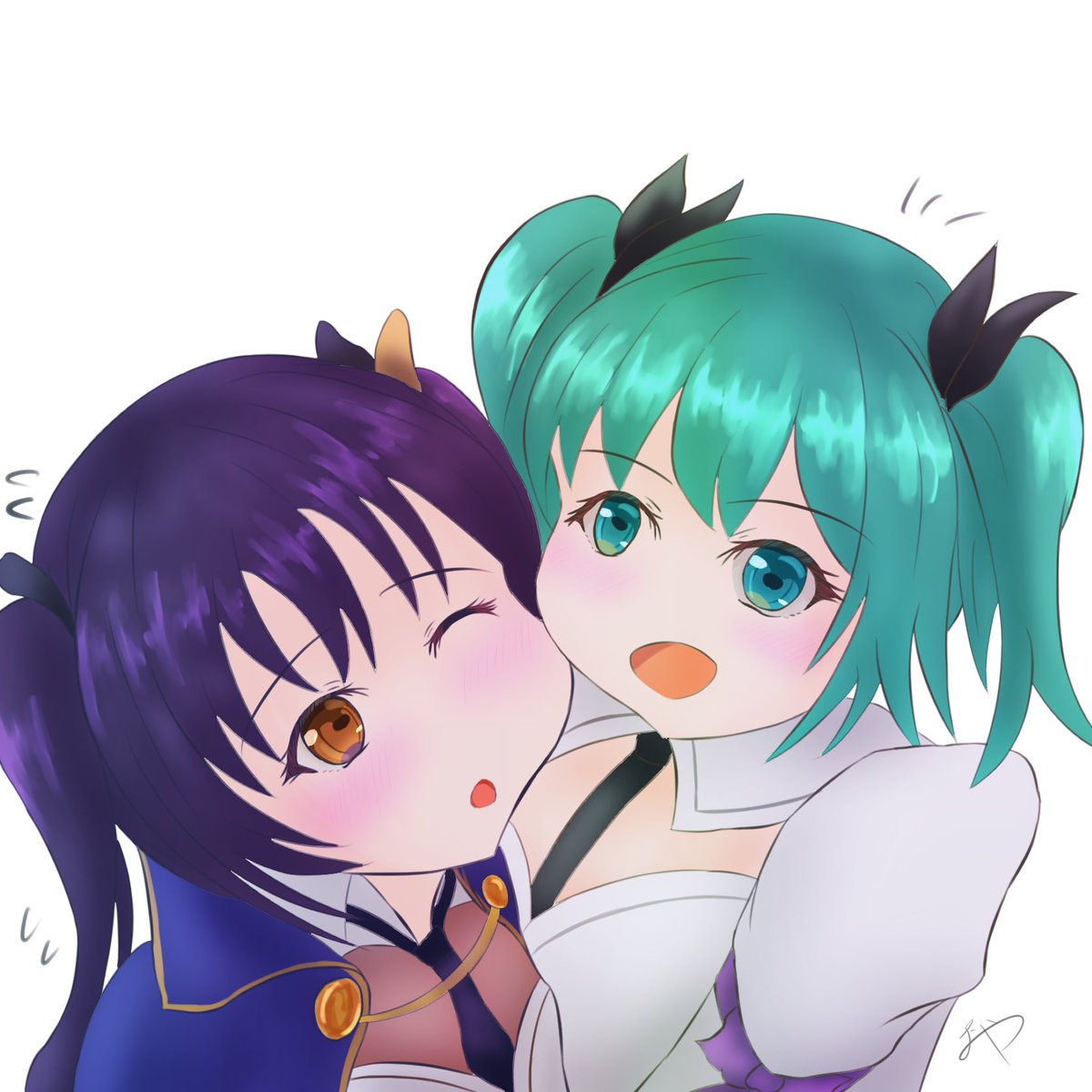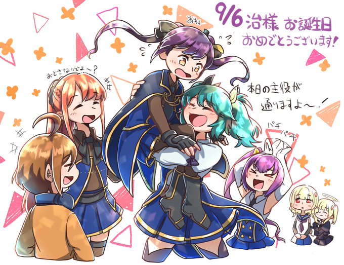 因ちゃんお誕生日おめでとう🎂✨ #鈴木因生誕祭2021 #鈴木因誕生祭2021 そして大遅刻! #菱田治生誕祭2021 #菱田治誕生祭2021 因ちゃんのお誕生日だから、特別にリボンを交換してくれる治様は存在するはず…! あとはこんなわちゃわっちゃせいんつもいるだろうなっていう強めの幻覚 #アサルトリリィ_FA