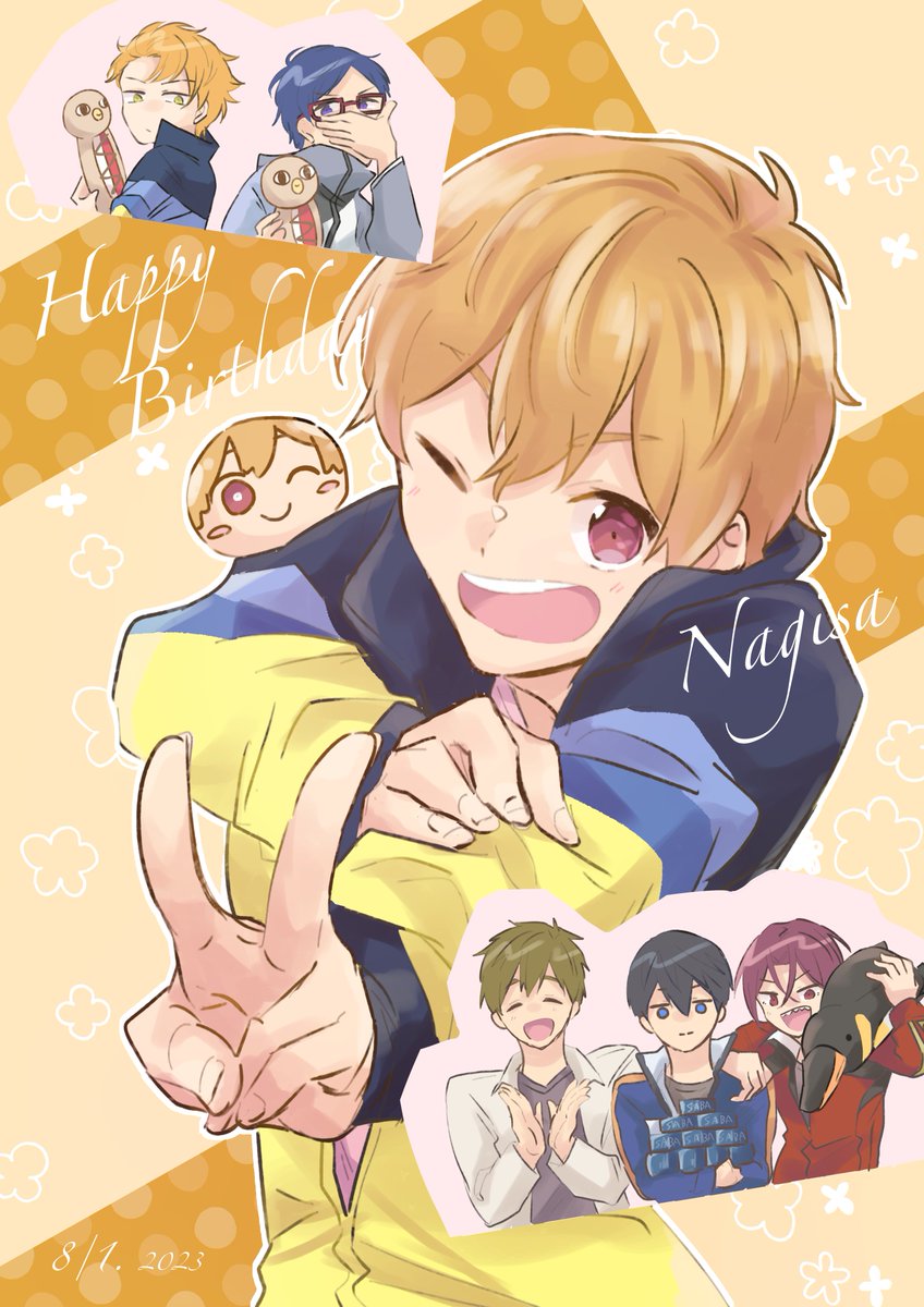 渚くんおめでとー🎉 いつも元気で明るくて夏が似合う❗️ きっと夢もたくさんあってなんでもできる子なのに競泳続ける道を選んでくれて嬉しい☺️いつまでも楽しく泳いでね✨ イラワのデザインめちゃ好きな感じなのでそれっぽく塗ってみた🎨 #葉月渚誕生祭2023 #葉月渚生誕祭2023