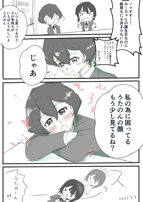みーちゃん、お誕生日おめでとう🎉 遅くなってごめんね うたのんと一緒にいつまでも仲良く楽しい平穏な毎日を過ごしてほしいです そんなみーちゃんのことを考えて題材を考えていたら、模写だけどこれだ!これを描きたい!と思うのを見つけたよ #藤森水都生誕祭2023 #イラスト好きな人と繋がりたい